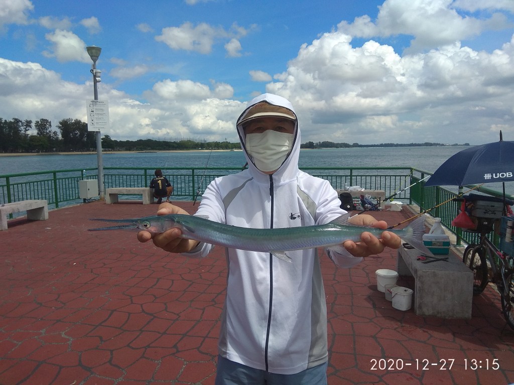 Around 1.10pm…I saw my fixed spool set rod tip rattle…knowing that it could be a gar fish taking, I wait until it tug hard on the rod then i strike. Wind it back and use the rod to lift it up.