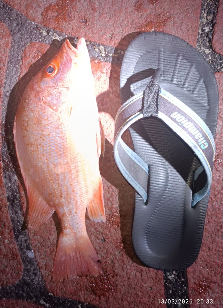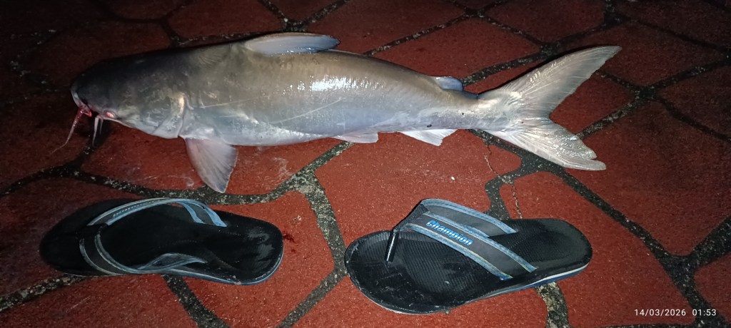 When the tide turn down, I landed two Marine Cat fish. One is about 3kg and the bigger one is about 4kg. Bait is fresh cuttle fish.