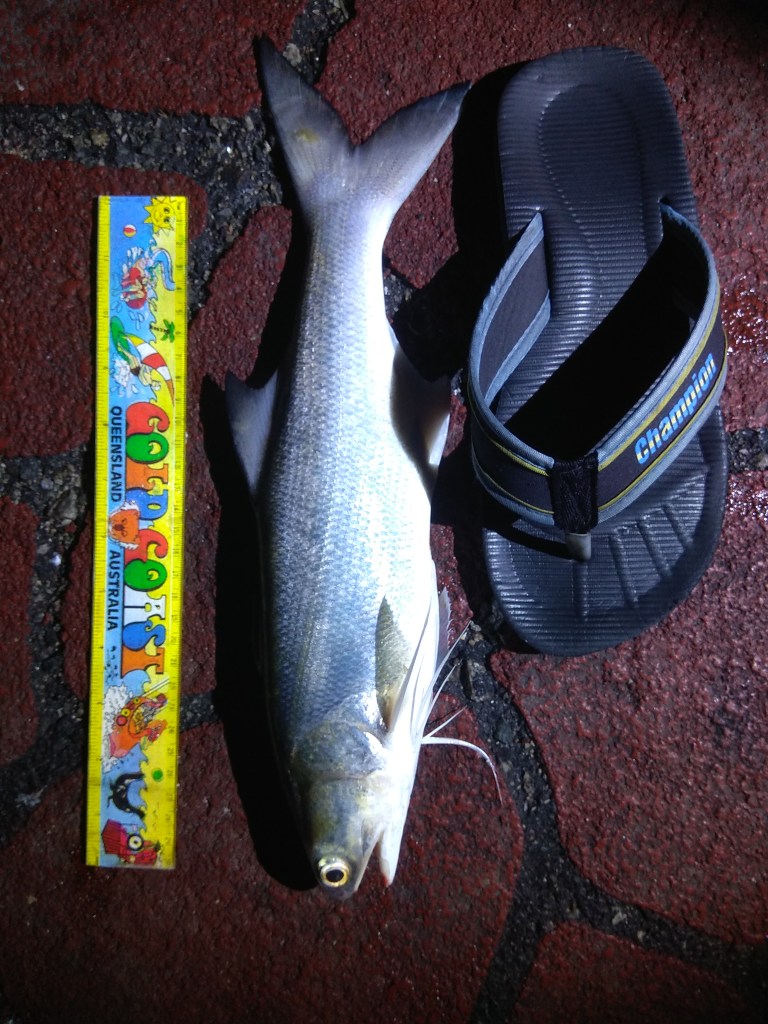 Caught both fishes when the tide is turning down. The travelly only cause the rod tip to rattle but the cat fish make the reel go screaming when i was busy searching for squid.